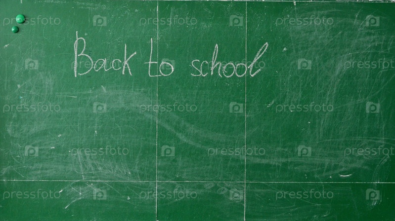Надпись НАЗАД В ШКЛОЛУ белым мелом на зеленой доске