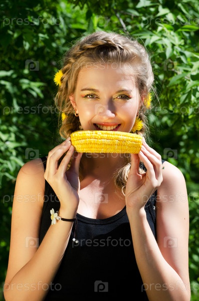 Молодая женщина с кукурузным початком