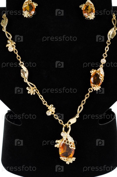 Ожерелье с подвеской и серьги на белом фоне