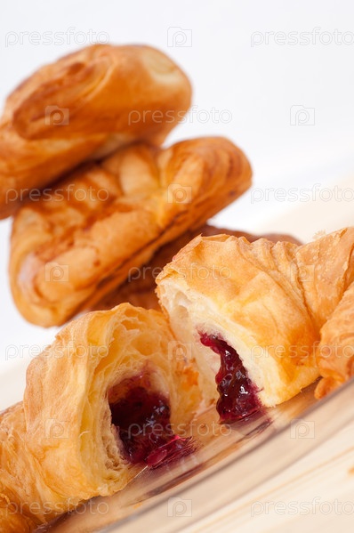 Французский свежий круассан с ягодным вареньем