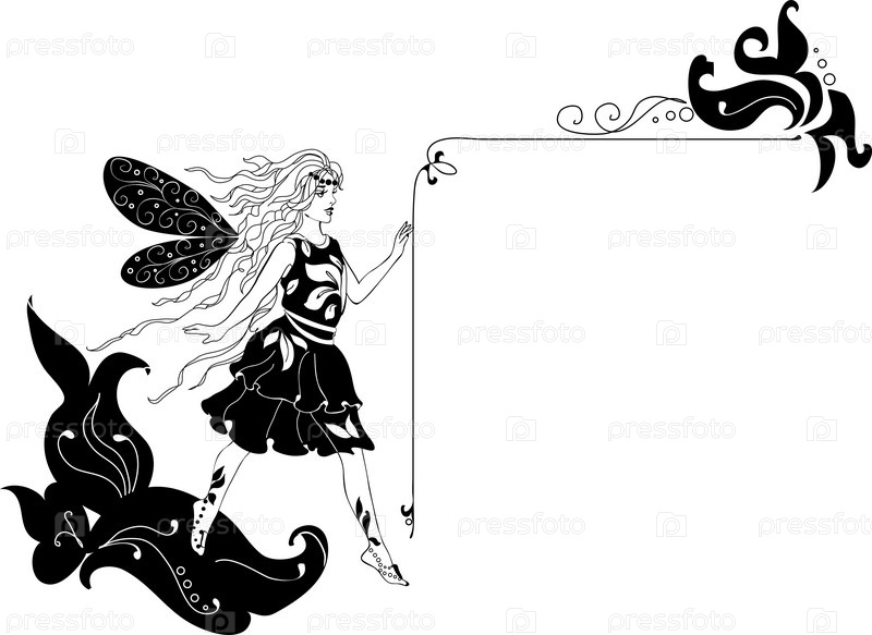 Фея с цветами на белом фоне