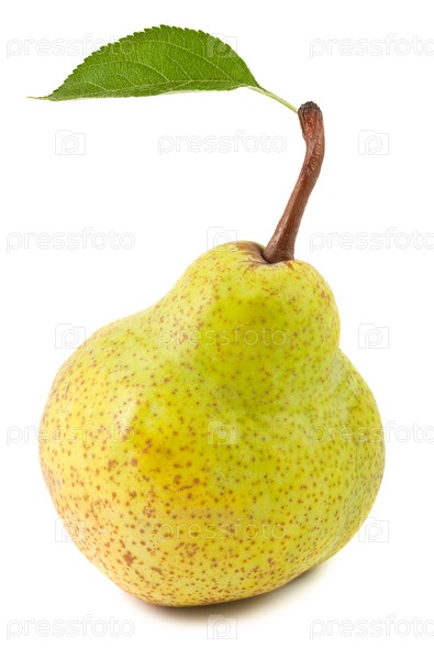 Зеленая груша с листьев, изолированная на белом фоне