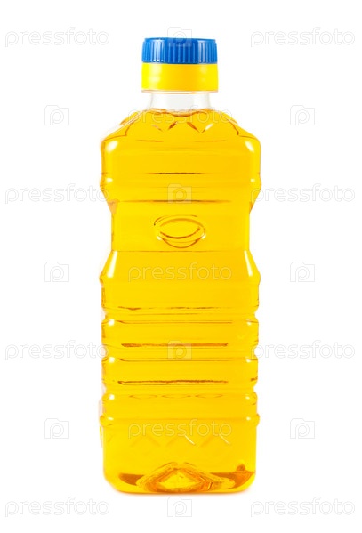 Растительное масло в пластиковой бутылке, изолированное на белом фоне