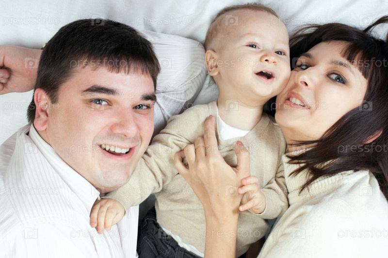 Счастливая семья: мама, папа и ребенок