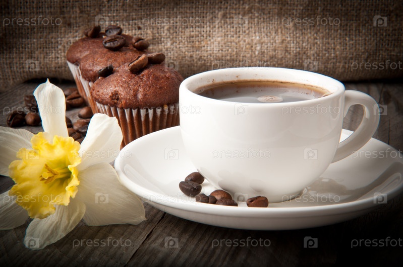 Чашка кофе и шоколадные кексы