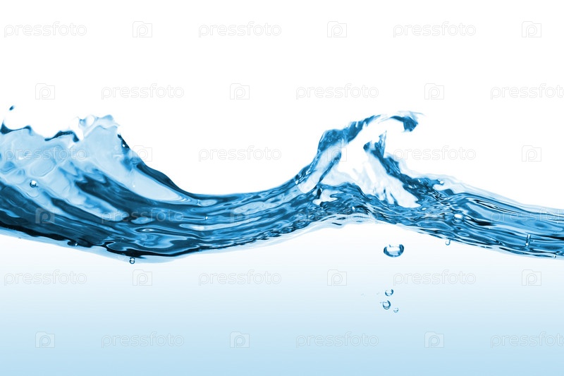 Волна голубой воды крупным планом на белом фоне