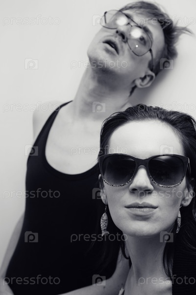 Портрет молодого мужчины и женщины в солнцезащитных очках