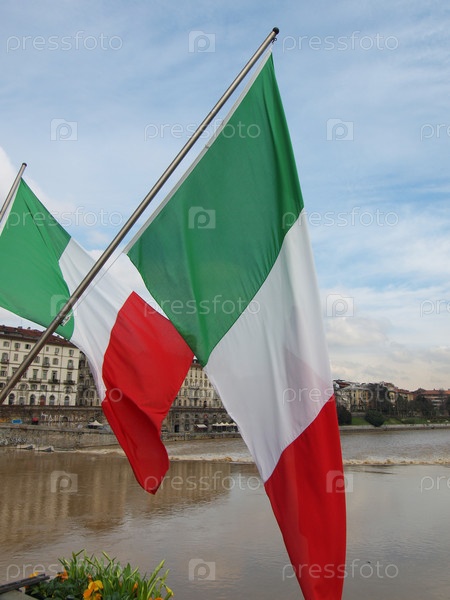Флаги в честь 150-й годовщины объединения Италии в Турине, Пьемонт, Италия