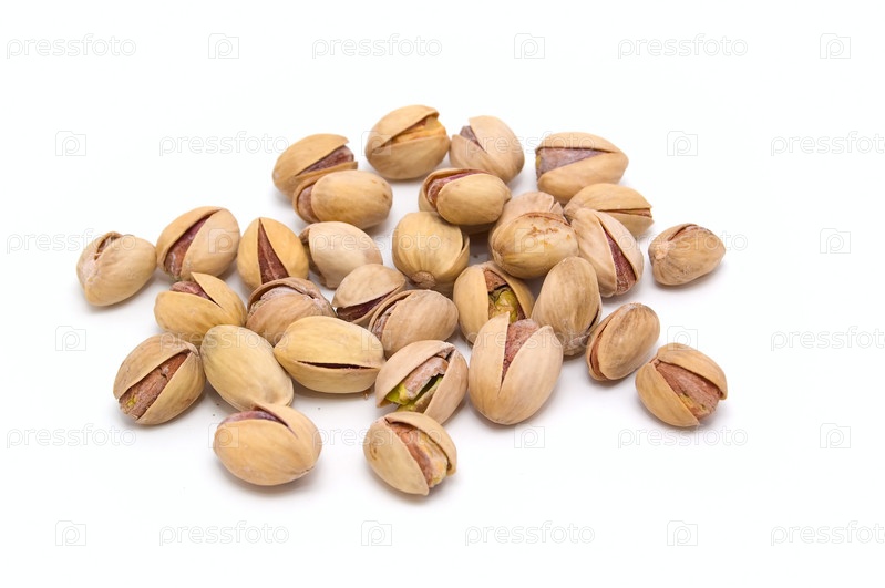 Соленые фисташки на белом фоне