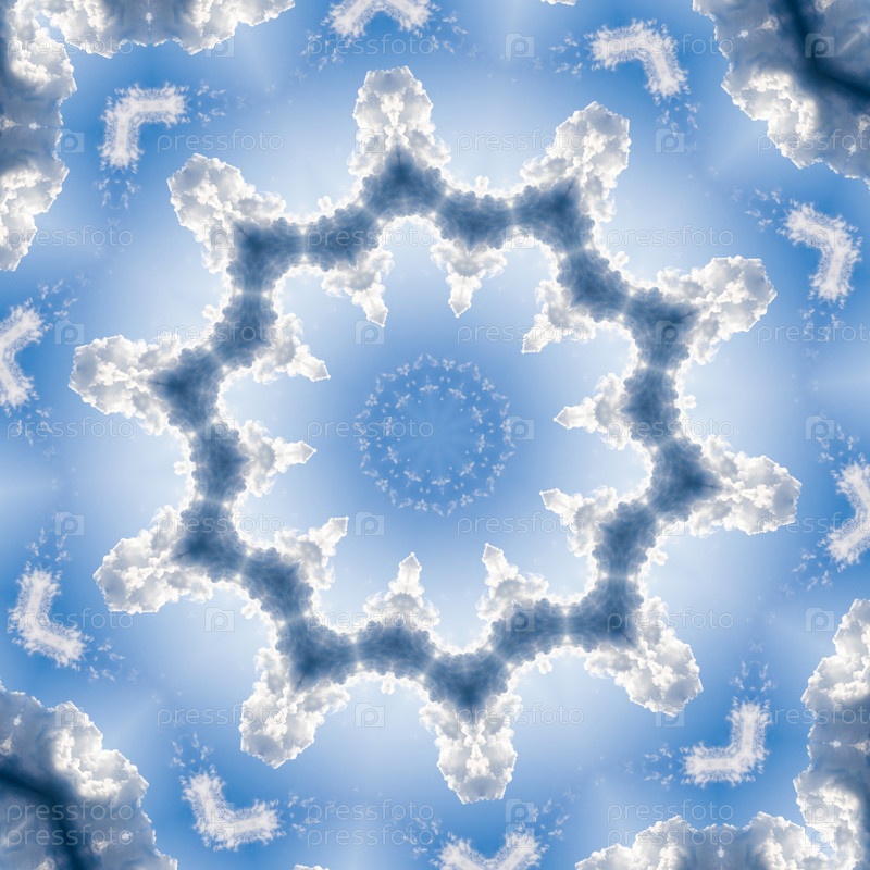 Абстрактный фон, калейдоскоп с голубым небом и белыми облаками