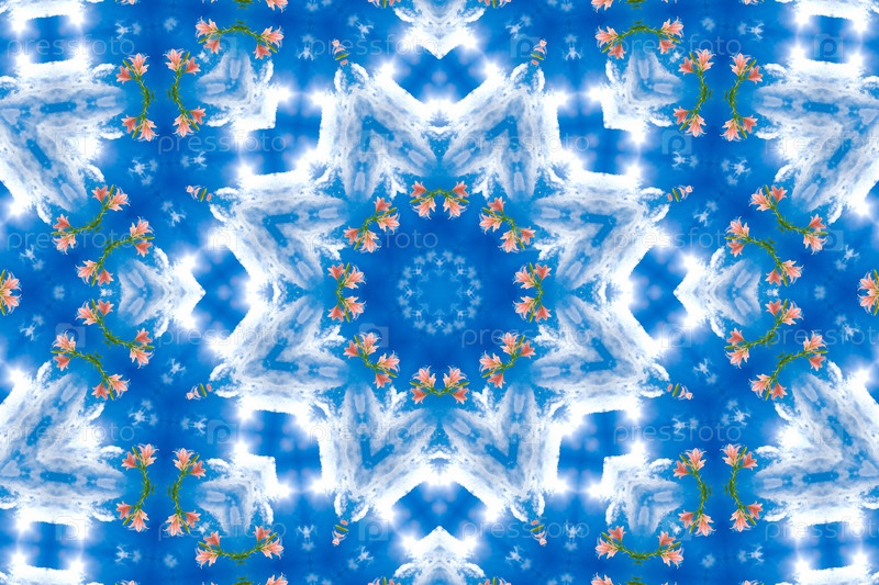Абстрактный фон, калейдоскоп цветов на синем фоне