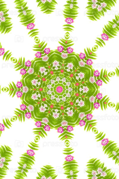Абстрактный фон. Калейдоскоп из цветов на белом фоне