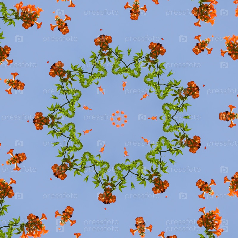 Абстрактный фон. Красивые оранжевые цветы на фоне неба