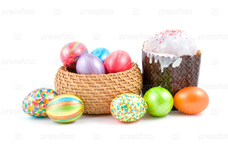 Пасхальный натюрморт на белом фоне