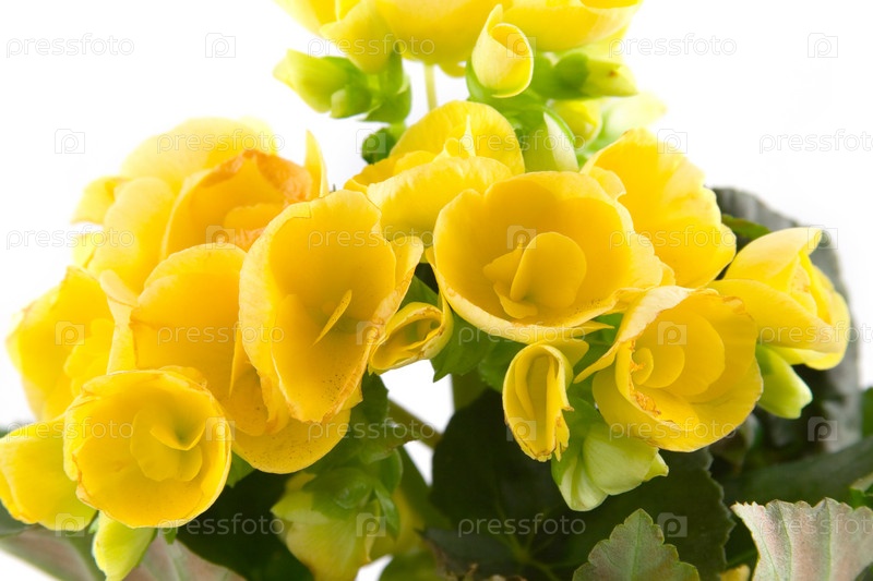Желтая бегония, изолированная на белом фоне