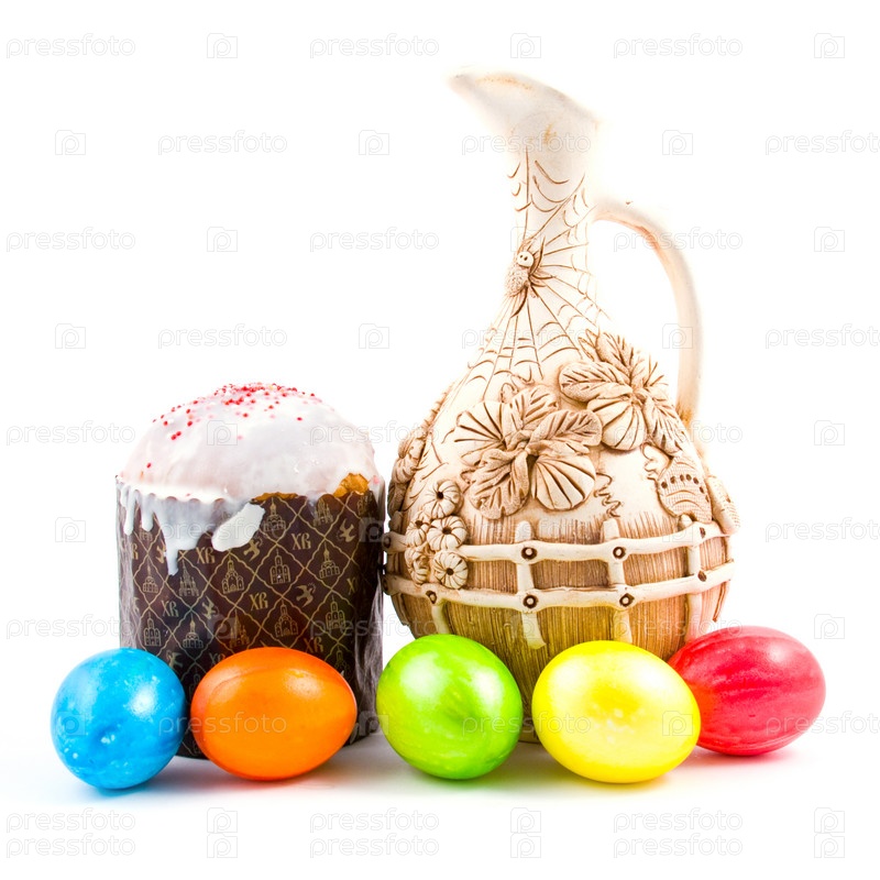 Пасхальный натюрморт на белом фоне