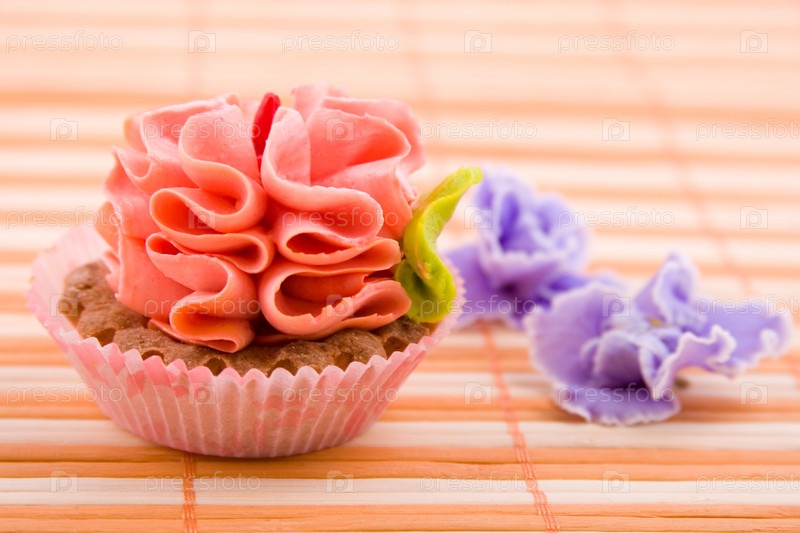 Кексы и цветы на столе