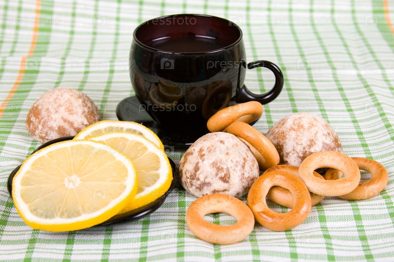 Чашка чая и выпечка на столе