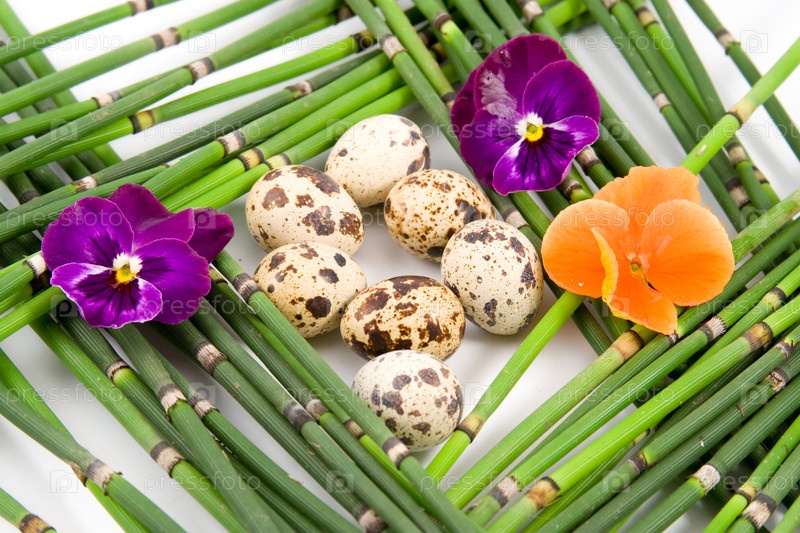 Рамка из стеблей и пасхальные яйца на белом фоне