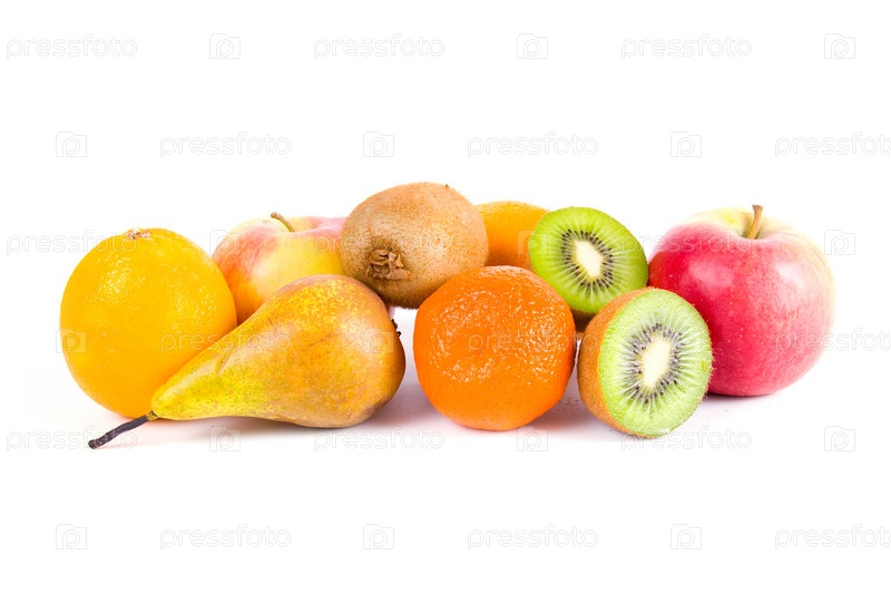 Спелые фрукты на белом фоне