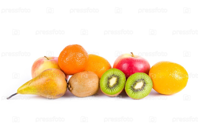 Спелые фрукты на белом фоне