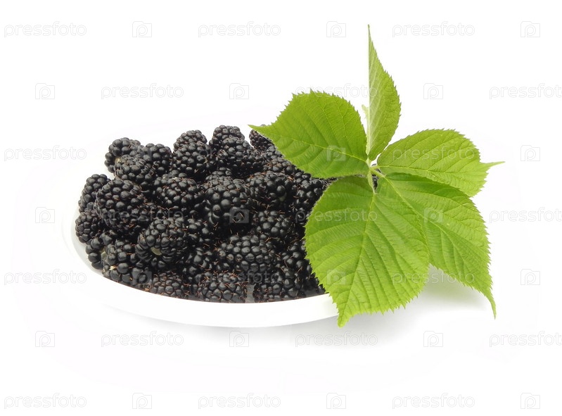 Ягоды и листья ежевики на белом фоне