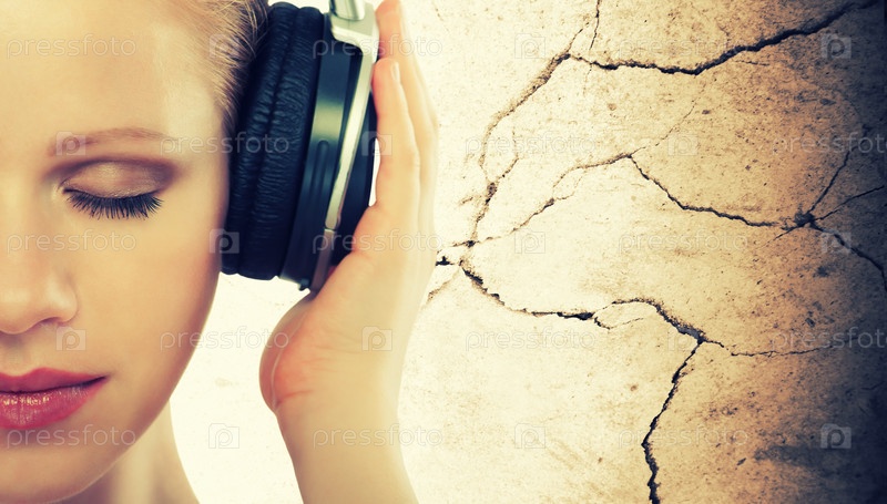 Музыкальная концепция. Половина лица женщины с наушниками