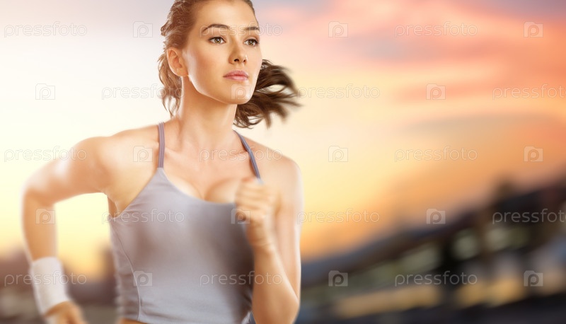 Женщина бежит на фоне заката