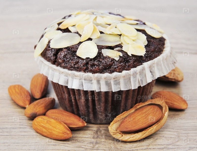 Миндальный кекс на деревянной поверхности