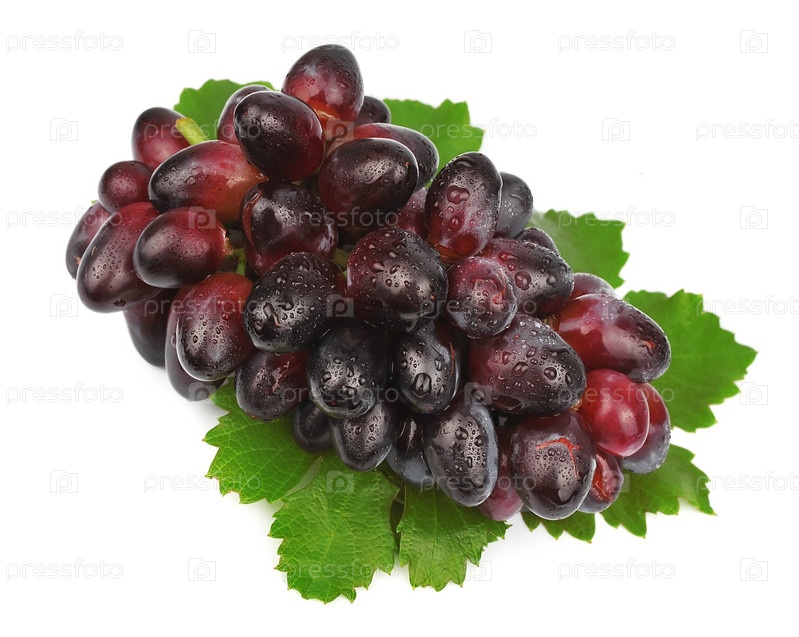 Плоды сладкого винограда с каплями воды на белом