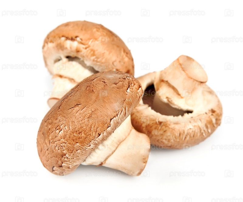 Шампиньоны крупным планом на белом фоне