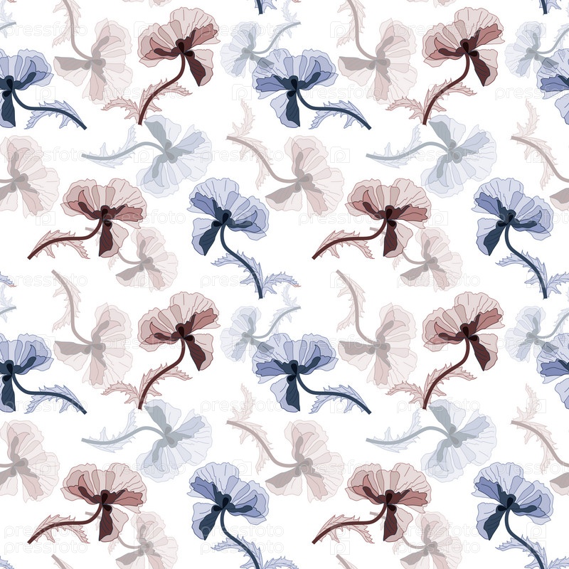 Бесшовный фон с синими и фиолетовыми маками в стиле ретро