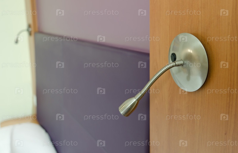 Небольшая металлическая лампа для чтения на деревянной стене