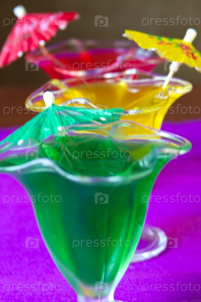 Бокалы с цветным желе с бумажными зонтиками