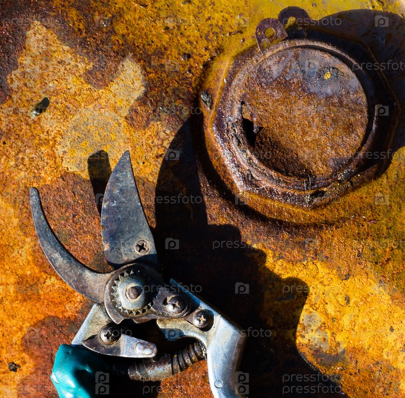 ККрасный ржавый металлический инструмент на ржавом фоне для обоев
