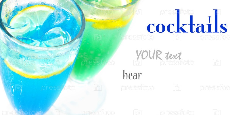 Летние тропические коктейли мартини на белом фоне