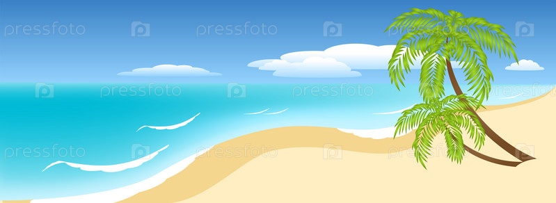 Песчаный пляж, океан, кокосовые пальмы