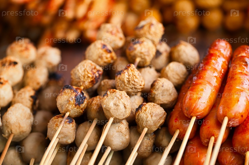 Барбекю на прилавке азиатского рынка