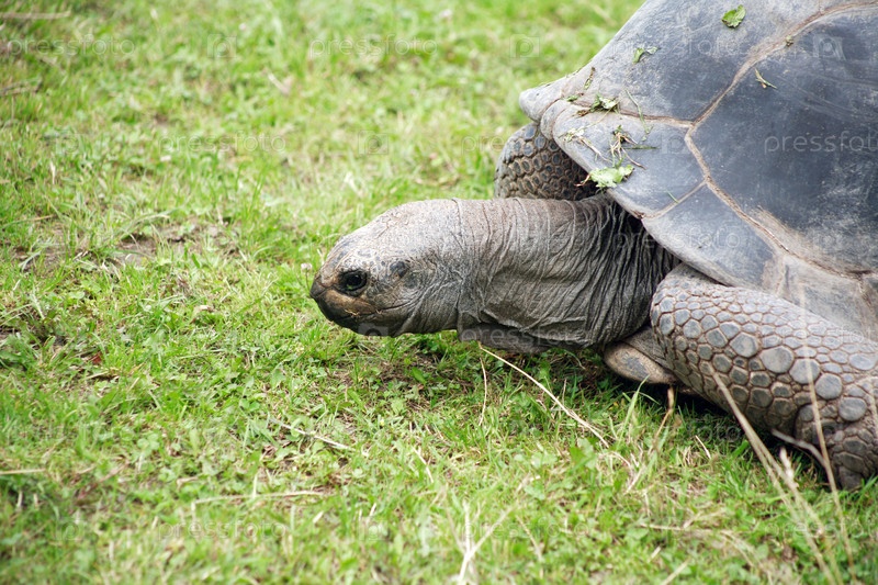 Большая черепаха на зеленой траве крупным планом