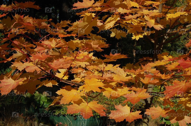 Ветви клена в солнечный теплый осенний день