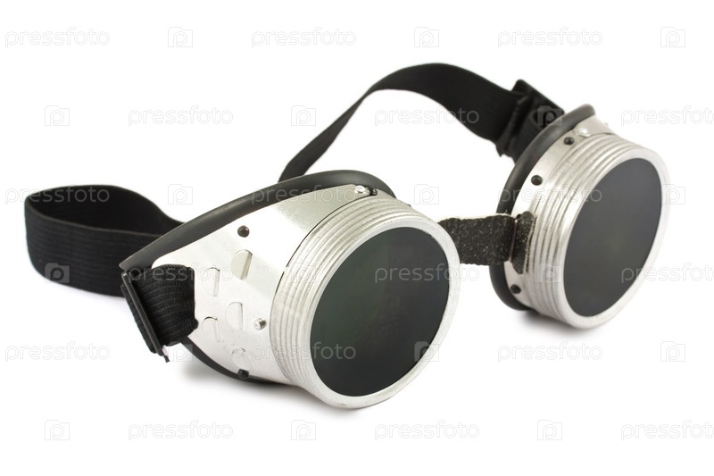 Старинные сварочные очки, изолированные на белом фоне