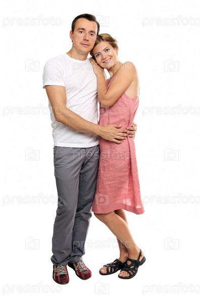 Привлекательная молодая пара на белом фоне