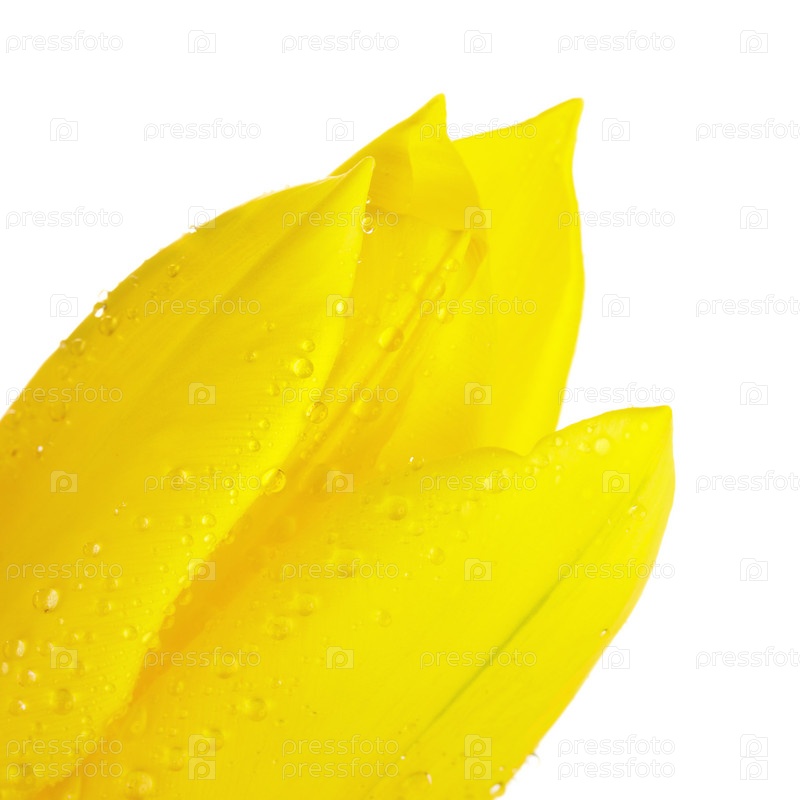 Один желтый тюльпан крупным планом, изолированный на белом фоне