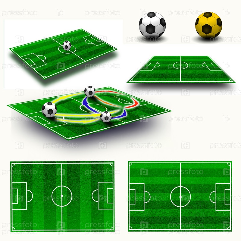 Коллаж. Тактическая таблица на футбольном поле и мячи