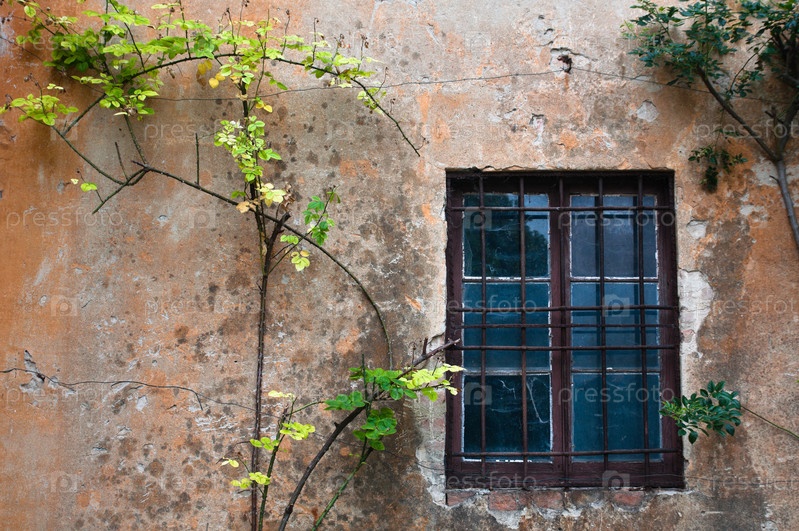 Окно и плющ, извивающийся на старой стене