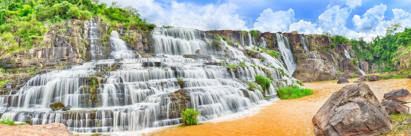 Красивый водопад Понгур во Вьетнаме. Панорама