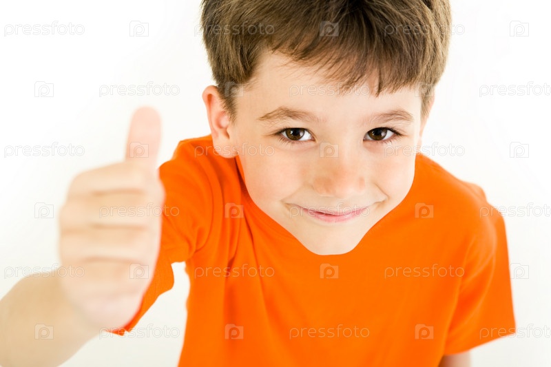 Изображение молодого мальчика, поднявшего руку и показывающего знак согласия
