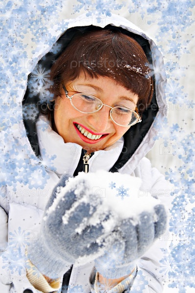 Женщина радуется белому снегу