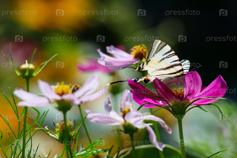 Большая красивая бабочка сидит на розовом цветке