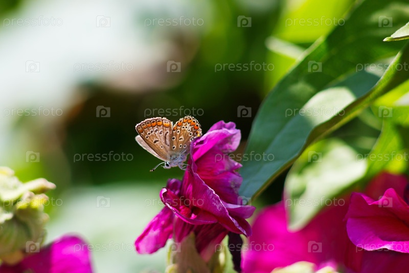 Большая красивая бабочка сидит на розовом цветке